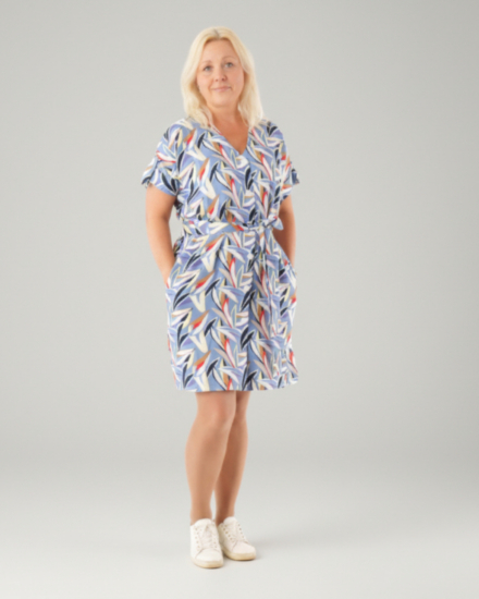 Lõhikute ja pikendatud õlaosaga kleit “Kristi”, helesinine