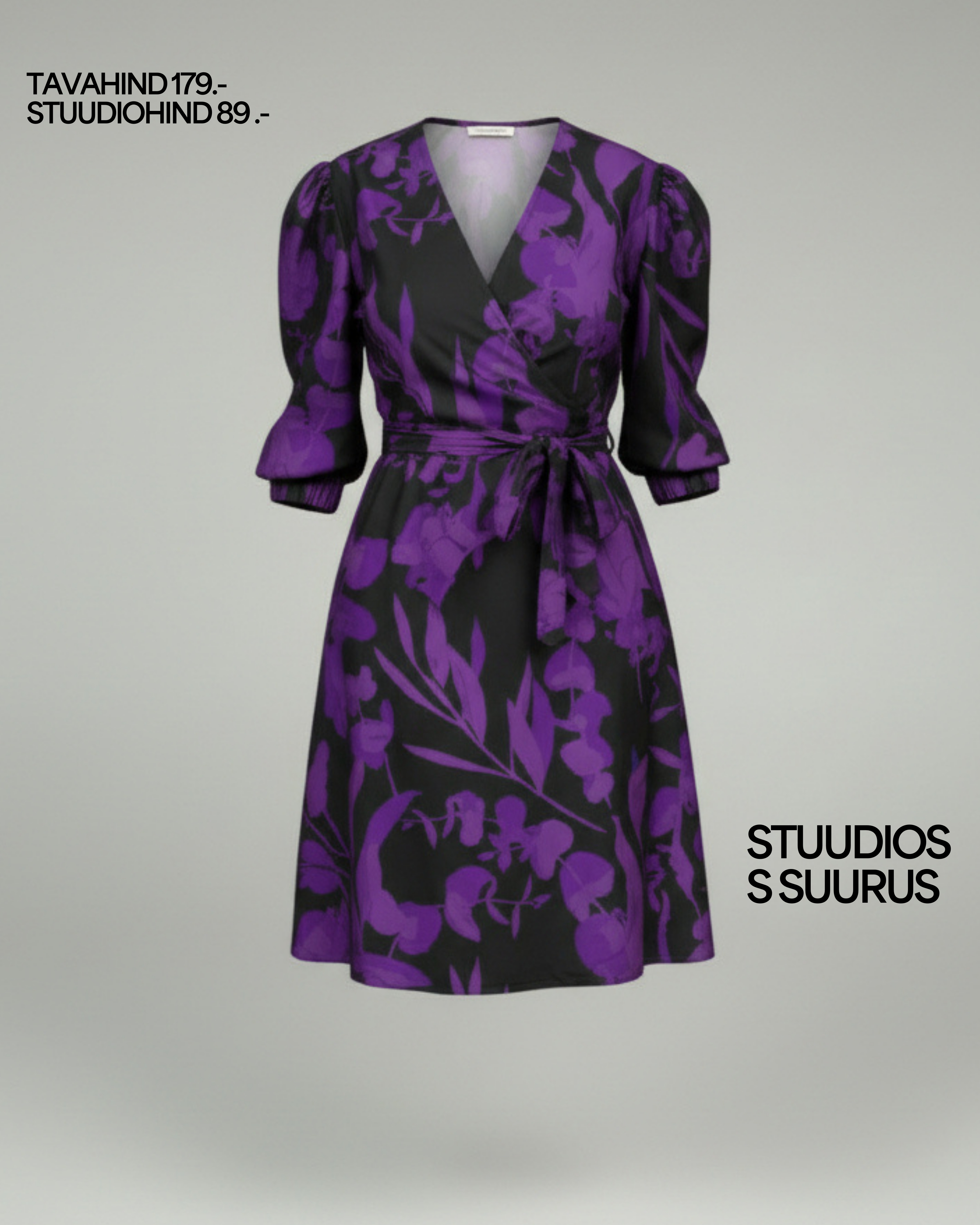 You are here: Home1 / Pood2 / Kleidid3 / Erikollektsioon "Flora"4 / Hõlmikkleit “Kristi”, 3/4 pikkuses puhvis varrukatega, must lilla must...