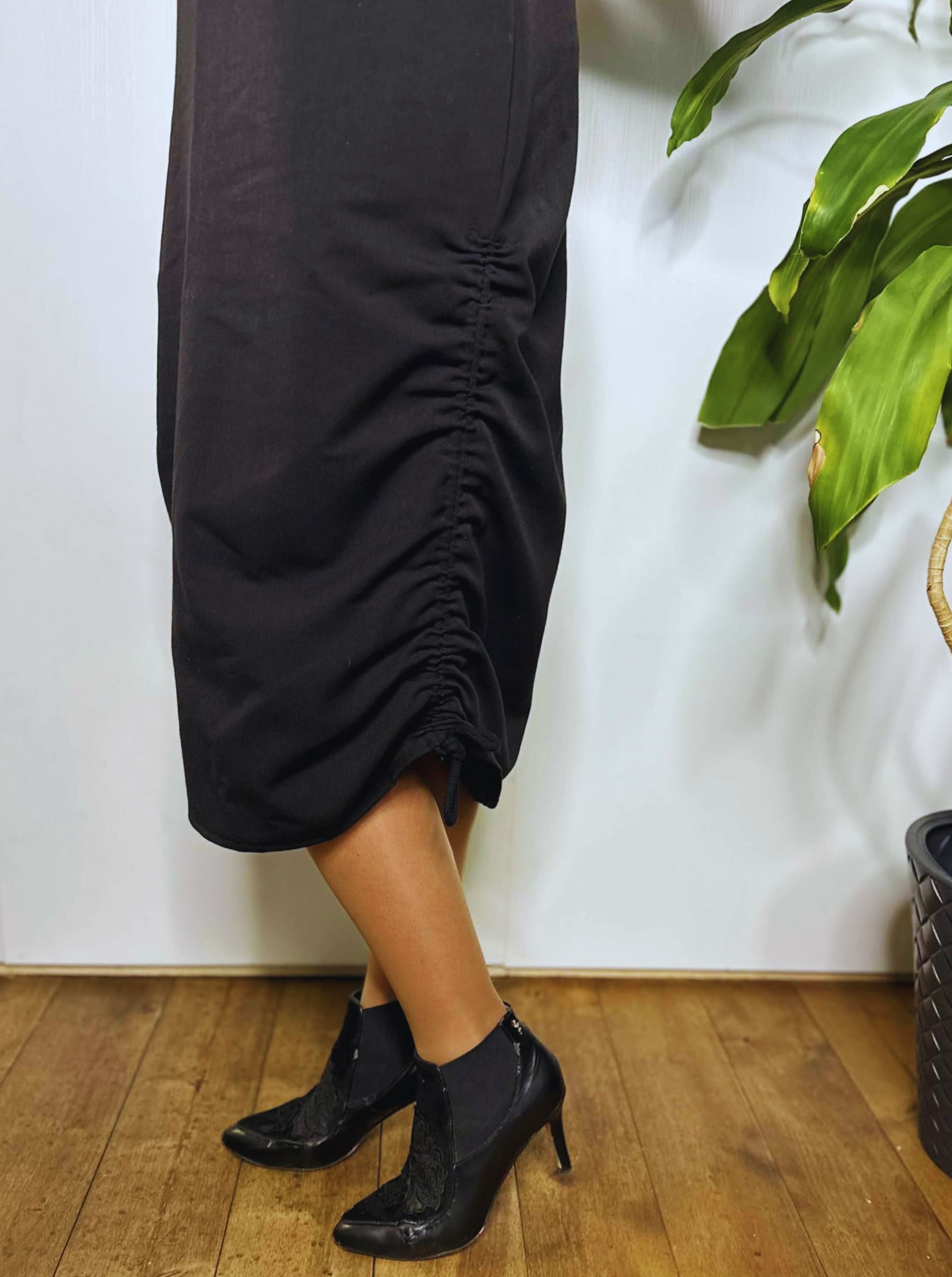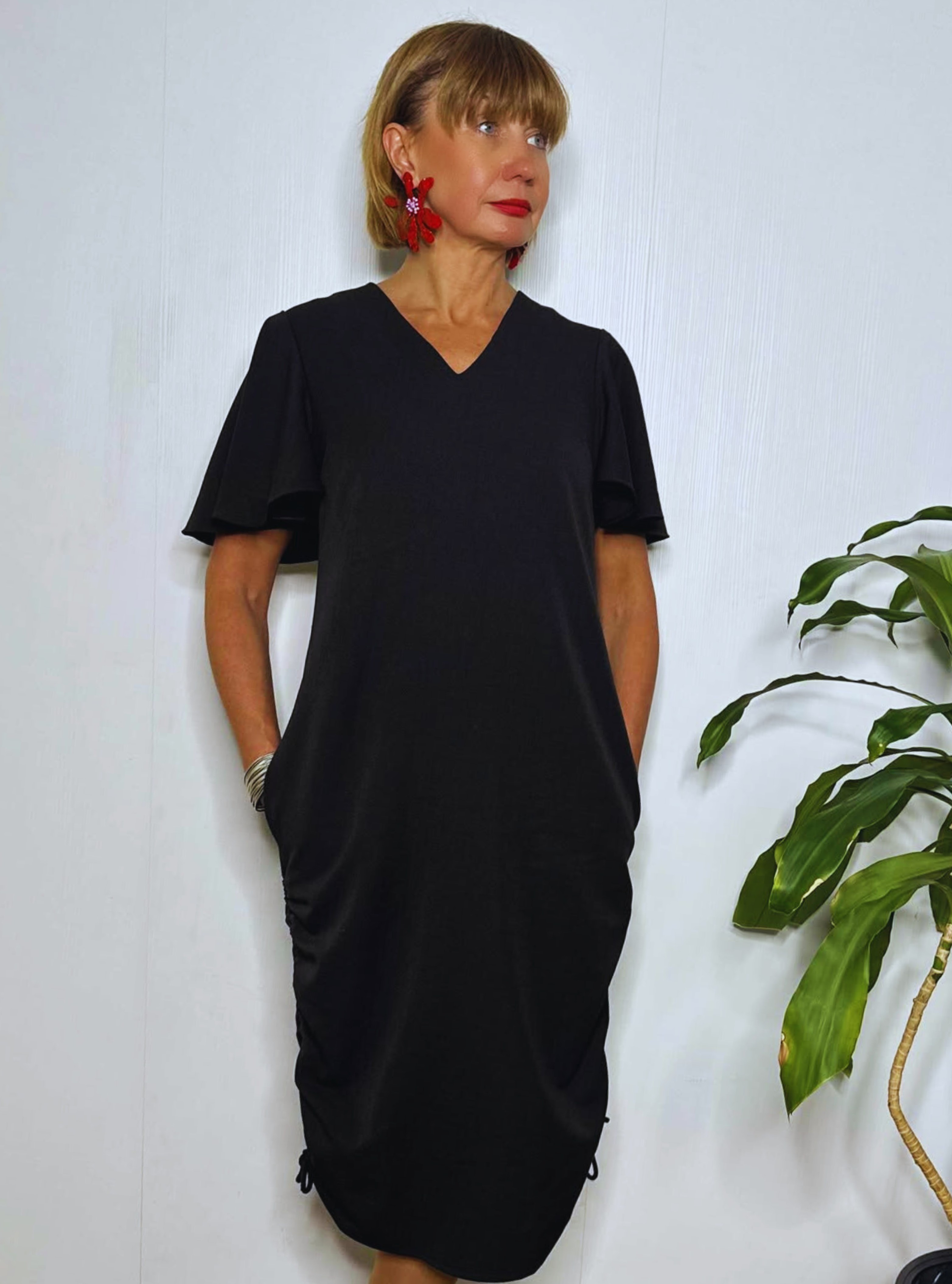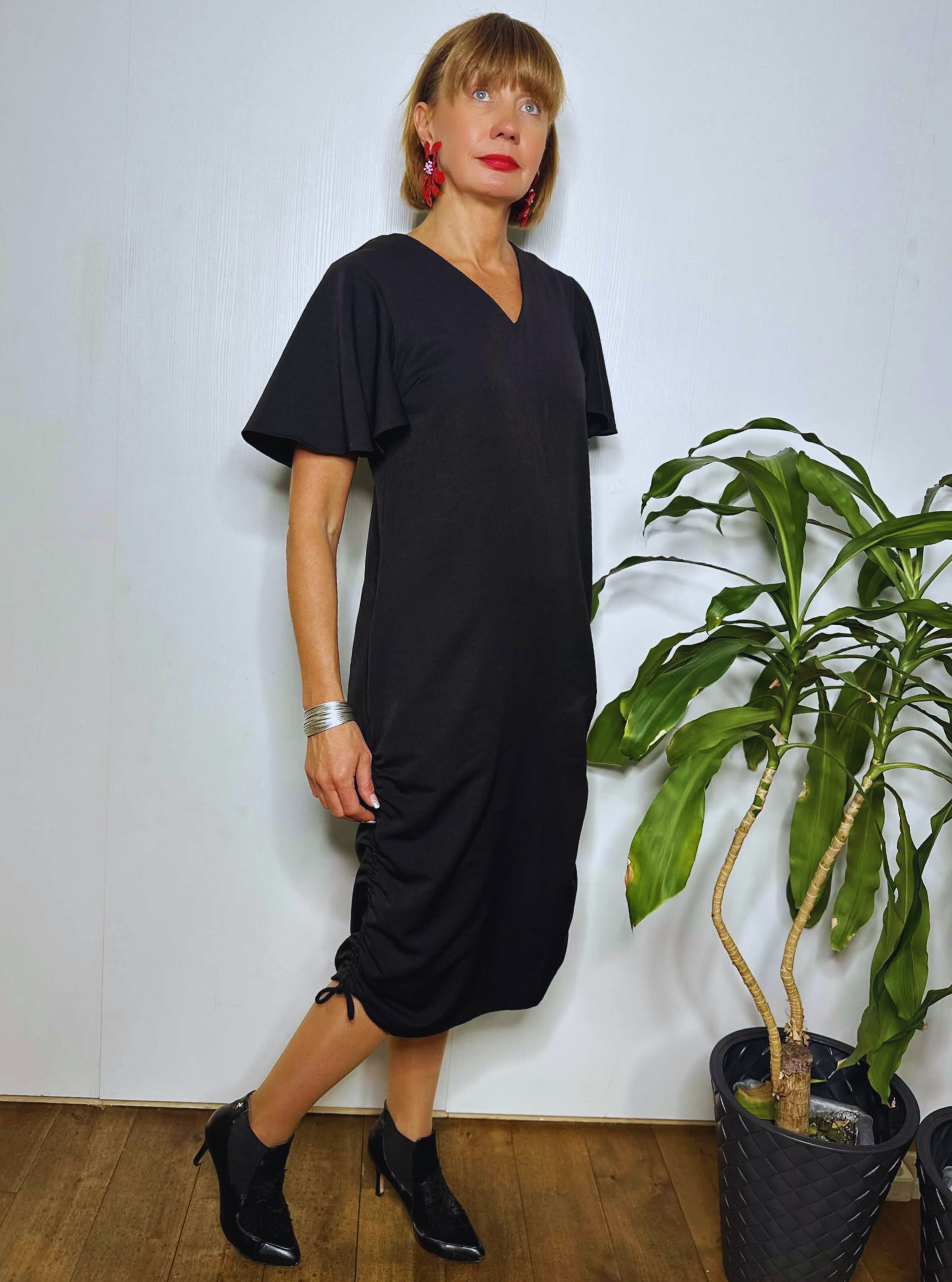 Pehmest segukangast midipikkuses kleit, mille külgedel asuvate paeltega saab reguleerida kleidi pikkust ja krookeid. Naiselikkust lisavad lendlevad varrukad. Kleidil on kaks mugavat küljetaskut.