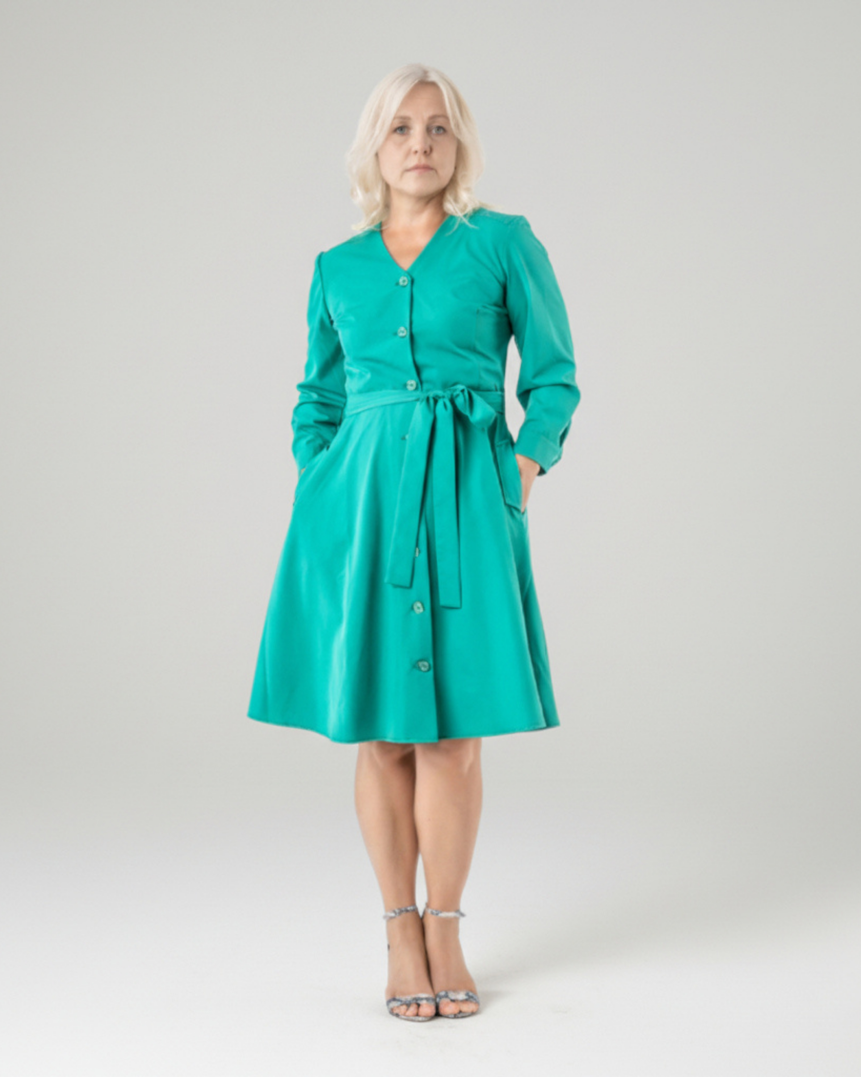 Laia seelikuosaga kleit “Kai”, 3/4 pikkuses sirgete varrukatega, roheline