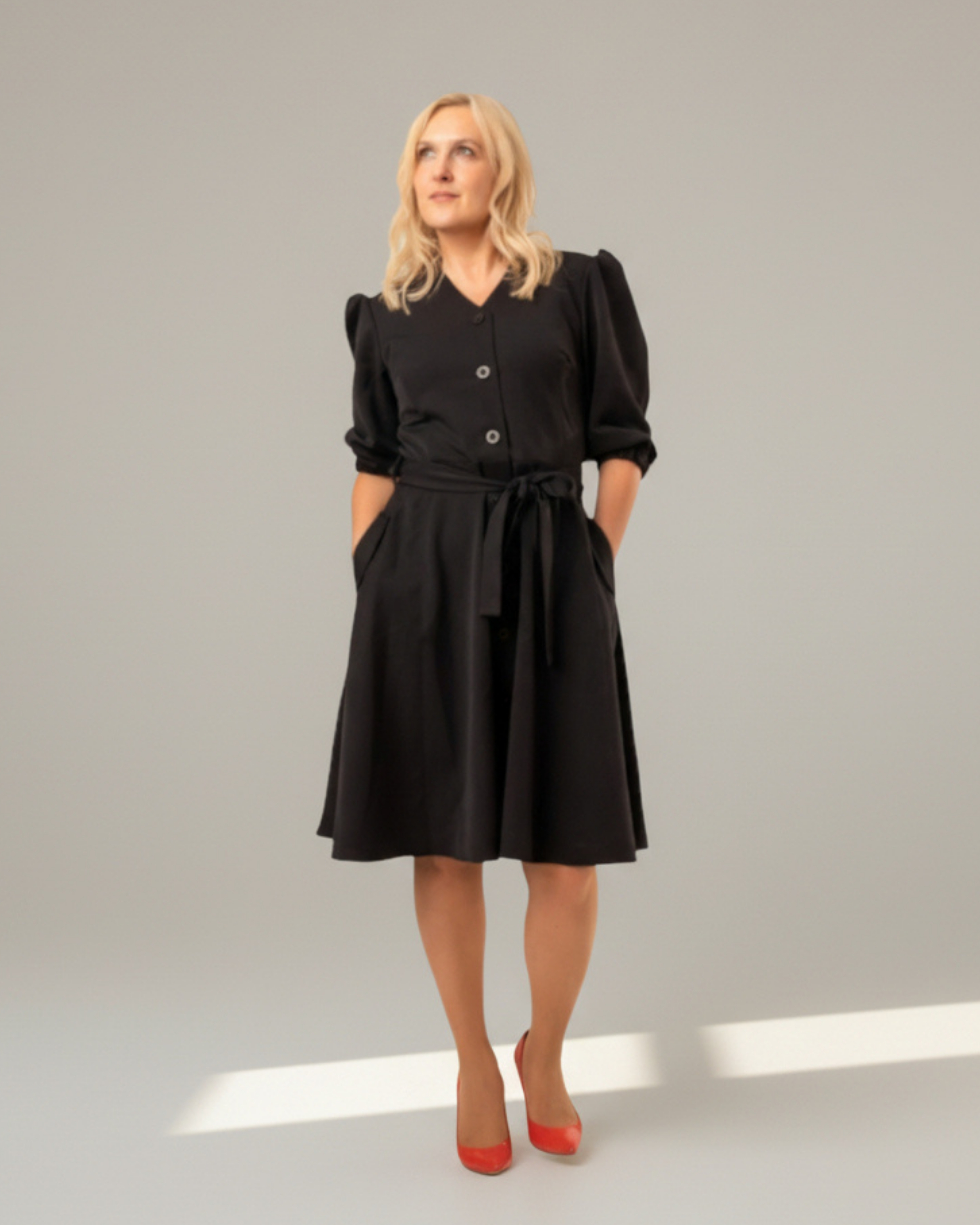 Laia seelikuosaga kleit “Kai”, puhvis varrukatega, must