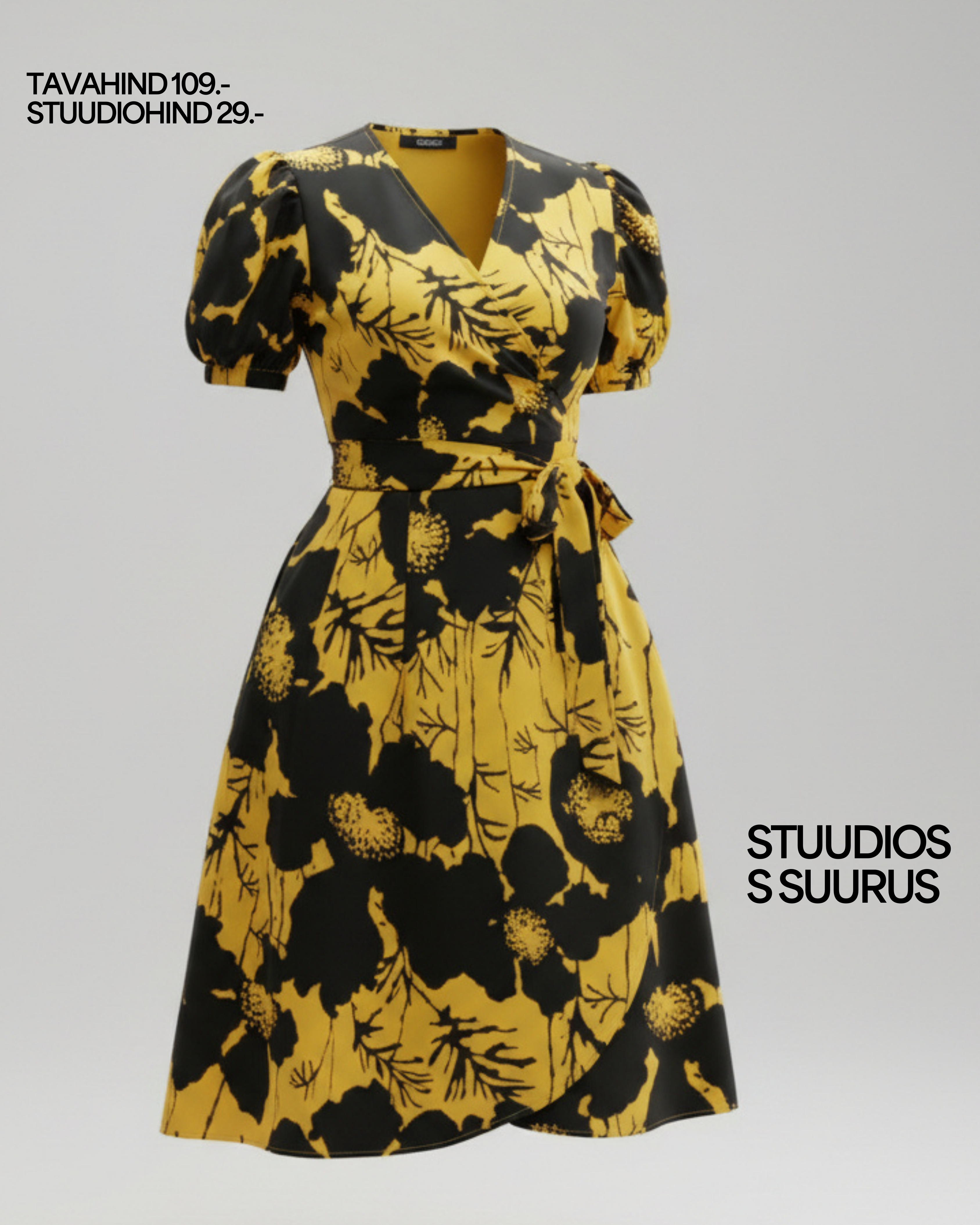 You are here: Home1 / Pood2 / Kleidid3 / Stuudios kohe saadaval4 / Midipikkuses hõlmikkleit “Kai”, lühikeste puhvis varrukatega, kollane suurt...