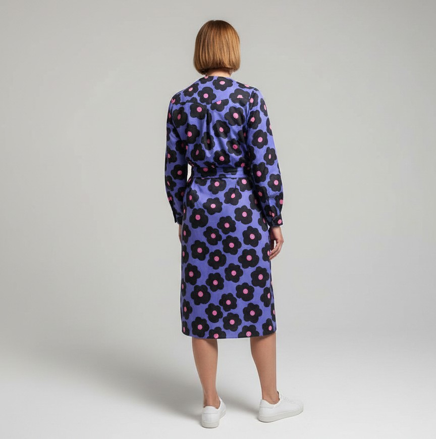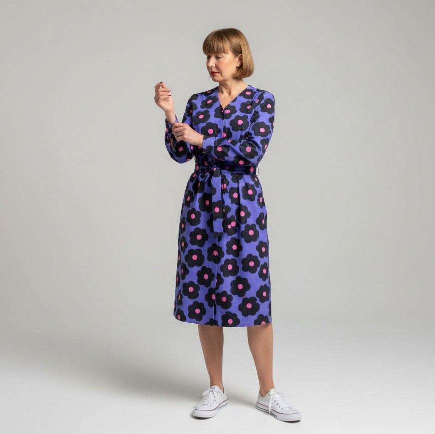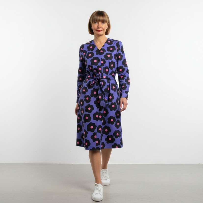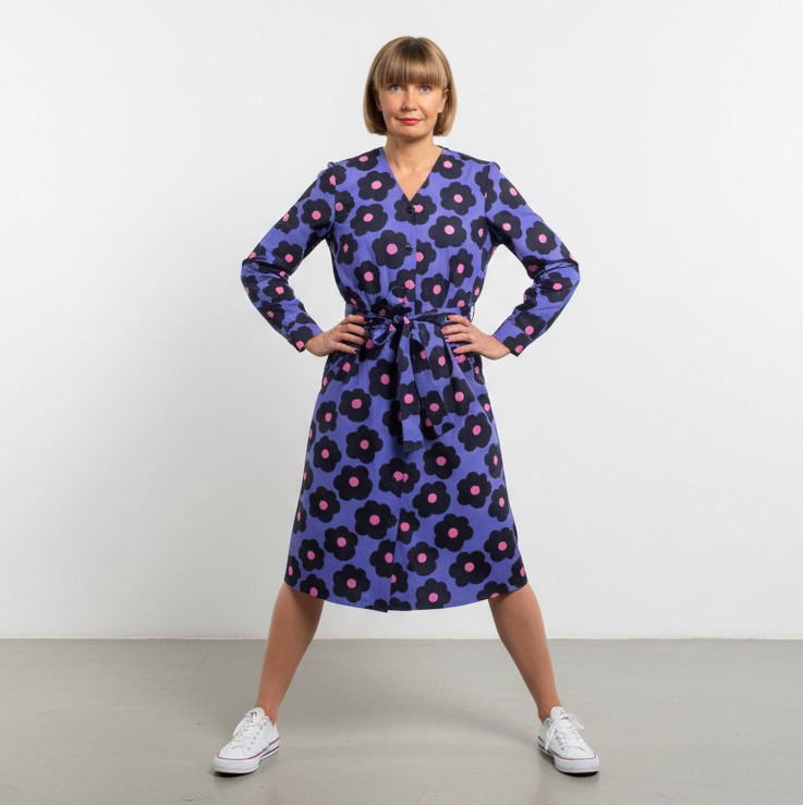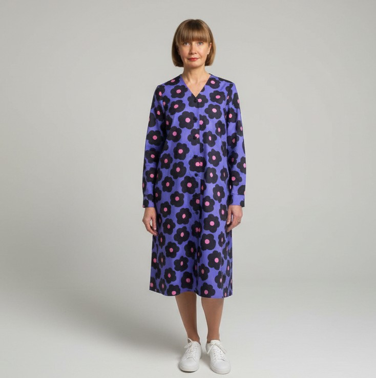 Vaba lõikega mansettidega varrukatega särkkleit. Kleidi on efektsest lillelisest puuvillakangast. Kleiti saab kanda nii vööga või ilma. Kleidil on kaks mugavat küljetaskut.