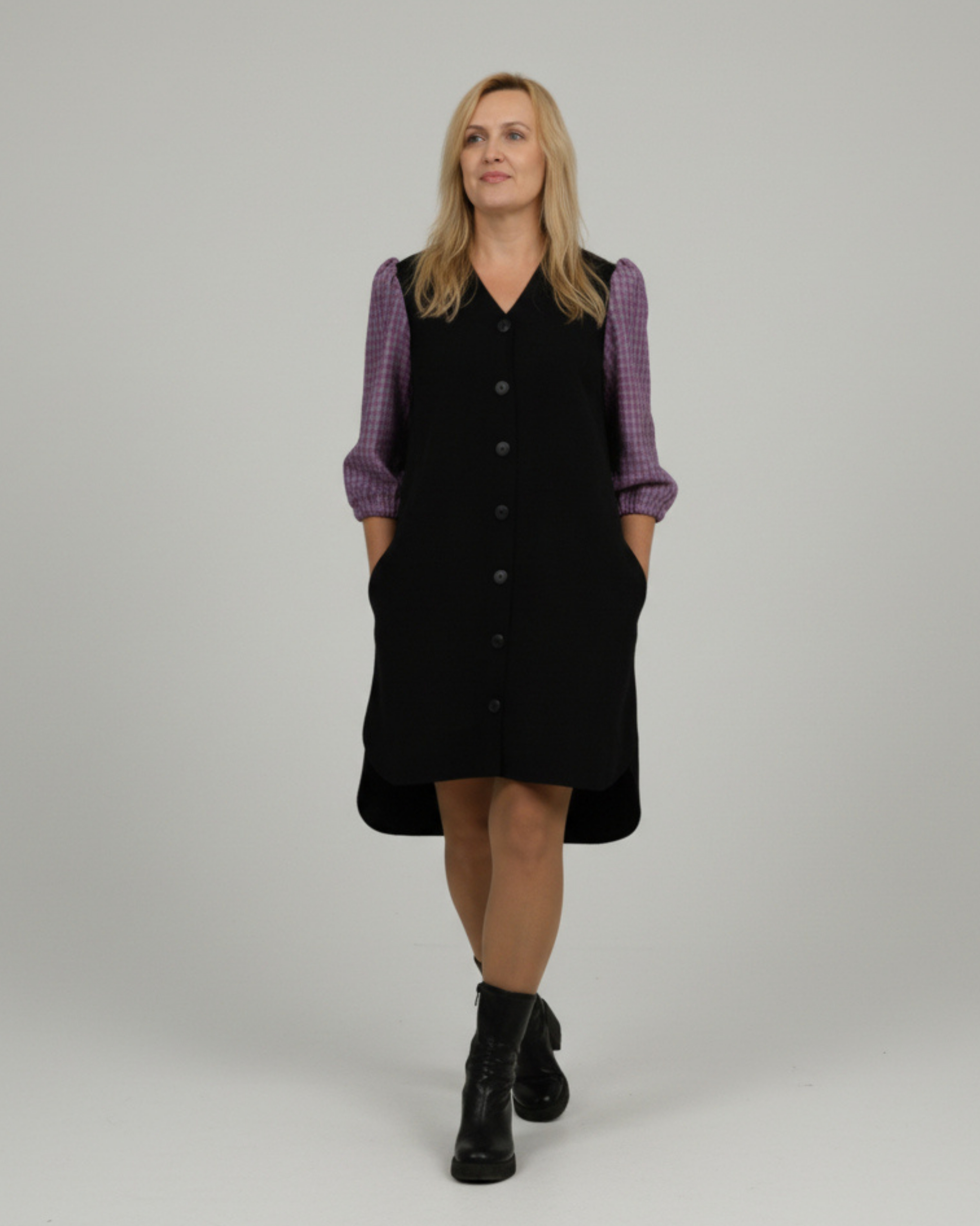Särkkleit “Katre”, puhvis varrukatega, must lillaga